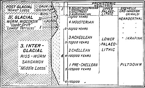 [L] This table is a modification of that of Obermaier in his Mensch der Vorzeit.(38) To each period of the chronologic reckoning should be added the 1900 years of our era.