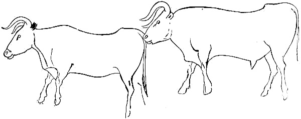 [M] Bison and wild cattle are grass eaters, and their natural habitats are the open plain and meadow regions. They also range into open forest lands where grasses can be found. The prehistoric 'urus' and 'wisent' of Europe were both found in forests, but this may not have been their natural habitat in Palæolithic times. See Appendix, Note IV.
