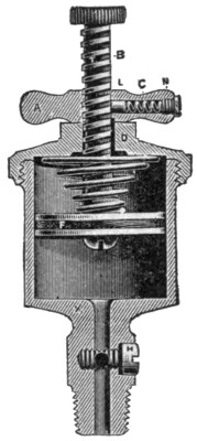 In addition to the glass water gauge, there are the try-cocks for ascertaining the level of the water in the boiler. There should be two to four of these. They open directly out of the boiler sheet, and by opening them in turn it is possible to tell approximately where the water stands. There should be one cock near the level of the crown sheet, or slightly above it, another about the level of the lower gauge cock, another about the middle of the gauge, another about the level of the upper gauge, and still another, perhaps, a little higher. But one above and one below the water line will be sufficient. If water stands above the level of the cock, it will blow off white mist when opened; if the cock opens from steam-space, it will blow off blue steam when opened.
