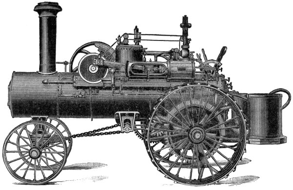 The boiler is of the direct flue locomotive type, fitted for straw, wood, or coal. Beam axle of the engine is behind the firebox, and is a single solid steel shaft. Front axle is elliptical, and so stronger than any other type.