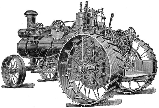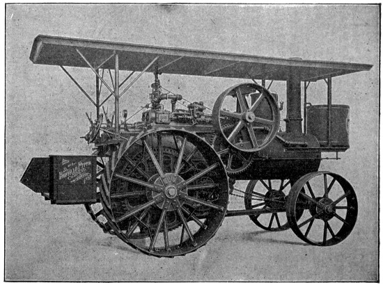 The friction clutch has hinged arms working into flywheel with but slight beveling on flywheel inner surface, and being susceptible of easy release. It is a specially patented device. The Woolf single eccentric reverse gear is used. Engine is fully provided with all modern fittings and appliances in addition to those mentioned. It was the only traction engine exhibited at Pan-American Exposition which won gold medal or highest award. It claims extra high grade of workmanship and durability.
