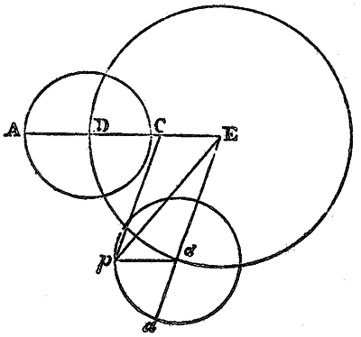 Kepler's third law follows as an immediate consequence of this determination; for, according to what has been already shown, the time of revolution round the whole ellipse, or, as it is commonly 48called, the periodic time, bears the same ratio to the unit of time as the whole area of the ellipse does to the area described in that unit. The area of the whole ellipse is proportional in different ellipses to the rectangle contained by the two principal axes, and the area described in an unit of time is proportional to SC × Dk, that is to say, is in the subduplicate ratio of SC² × Dk², or Dk²/ Cd, when the force varies inversely as the square of the distance SC; and in the ellipse, as we have said already, this is equal to a third proportional to the principal axes; consequently the periodic times in different ellipses, which are proportional to the whole areas of the ellipses directly, and the areas described in the unit of time inversely, are in the compound ratio of the rectangle of the axes directly, and subduplicately as a third proportional to the axes inversely; that is to say, the squares of these times are proportional to the cubes of the longest axes, which is Kepler's law.
