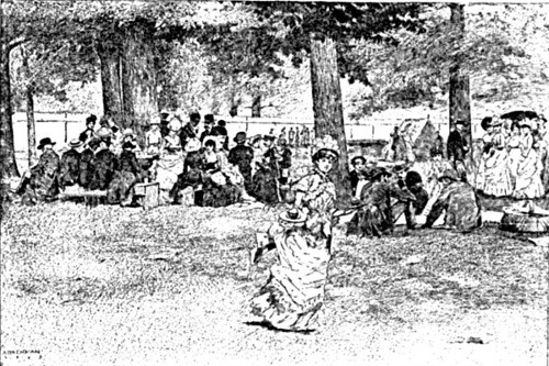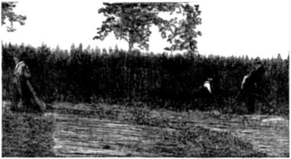In the earliest spring nothing is sooner afield to contest possession of the land than the blue-grass. Its little green spear-points are the first to pierce the soft rich earth, and array themselves in countless companies over the rolling landscapes, while its roots reach out in every direction for securer foothold. So early does this take place, that a late hoar-frost [4] will now and then mow all these bristling spear-points down. Sometimes a slow-falling sleet will incase each emerald blade in glittering silver; but the sun by-and-by melts the silver, leaving the blade unhurt. Or a light snow-fall will cover tufts of it over, making pavilions and colonnades with white roofs resting on green pillars. The roofs vanish anon, and the columns go on silently rising. But usually the final rigors of the season prove harmless to the blue-grass. One sees it most beautiful in the spring, just before the seed stalks have shot upward from the flowing tufts, and while the thin, smooth, polished blades, having risen to their greatest height, are beginning to bend, or break and fall over on themselves and their nether fellows from sheer luxuriance. The least observant eye is now constrained to note that blue-grass is the characteristic element of the Kentucky turf—the first element of beauty in the Kentucky landscape. Over the stretches of woodland pasture, over the meadows and the lawns, by the edges of turnpike and lane, in the fence corners—wherever its seed has been allowed to flourish—it spreads a verdure so soft in fold and fine in texture, so entrancing by its freshness and fertility, that it looks like a deep-lying, thick-matted emerald moss. One thinks of it, not as some heavy, velvet-like carpet spread over the earth, but as some light, seamless veil that has fallen delicately around it, and that might be blown away by a passing breeze. [5]