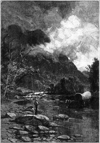 As I stood one day in this valley, which has already begun to put on the air of civilization, with its hotel and railway station and mills and pretty hometeads, [300] I saw a sight which seemed to me a complete epitome of the past and present tendencies there at work—a summing up of the past and a prophecy of the future. Creeping slowly past the station—so slowly that one knows not what to compare it to unless it be the minute-hand on the dial of a clock—creeping slowly along the Wilderness Road towards the ascent of Cumberland Gap, there came a mountain wagon, faded and old, with its dirty ragged canvas hanging motionless, and drawn by a yoke of mountain oxen which seemed to be moving in their sleep. On the seat in front, with a faded shovel-hat capping his mass of coarse tangled hair, and wearing but two other garments—a faded shirt and faded breeches—sat a faded, pinched, and meagre mountain boy. The rope with which he drove his yoke had dropped between his clasped knees. He had forgotten it; there was no need to remember it. His starved white face was kindled into an expression of passionate hunger and excitement. In one dirty claw-like hand he grasped a small paper bag, into the open mouth of which he had thrust the other hand, as a miser might thrust his into a bag of gold. He had just bought, with a few cents, some sweetmeat of civilization which he was about for the first time to taste. I sat and watched him move away and begin the ascent to the pass. Slowly, slowly, winding now this way and now that across the face of the mountain, now hidden, now in sight, [301] they went—sleeping oxen, crawling wagon, starved mountain child. At length, as they were about disappearing through the gap, they passed behind a column of the white steam from a saw-mill that was puffing a short distance in front of me; and, hidden in that steam, they disappeared. It was the last of the mountaineers passing away before the breath of civilization.