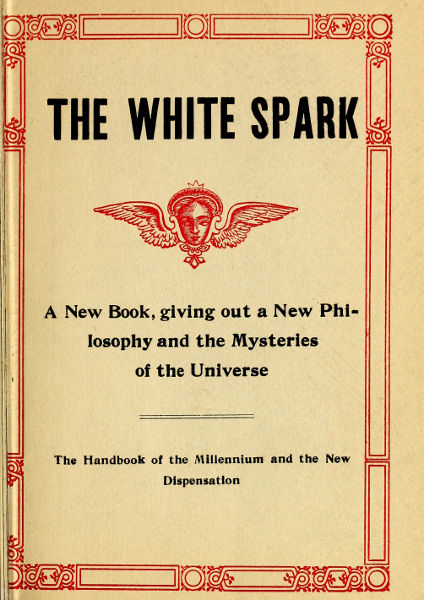 This book is called The White Spark as the white spark or vacuum cell in Nature IS THE RIGHT HAND OF GOD—it is a ubiquitous principle of the universe and is the cause and parent of electricity, combustion, radium, snow-flakes, flowers, trees, leaves, crystallization, wireless telegraphy, animal forms and EVEN LIFE ITSELF.