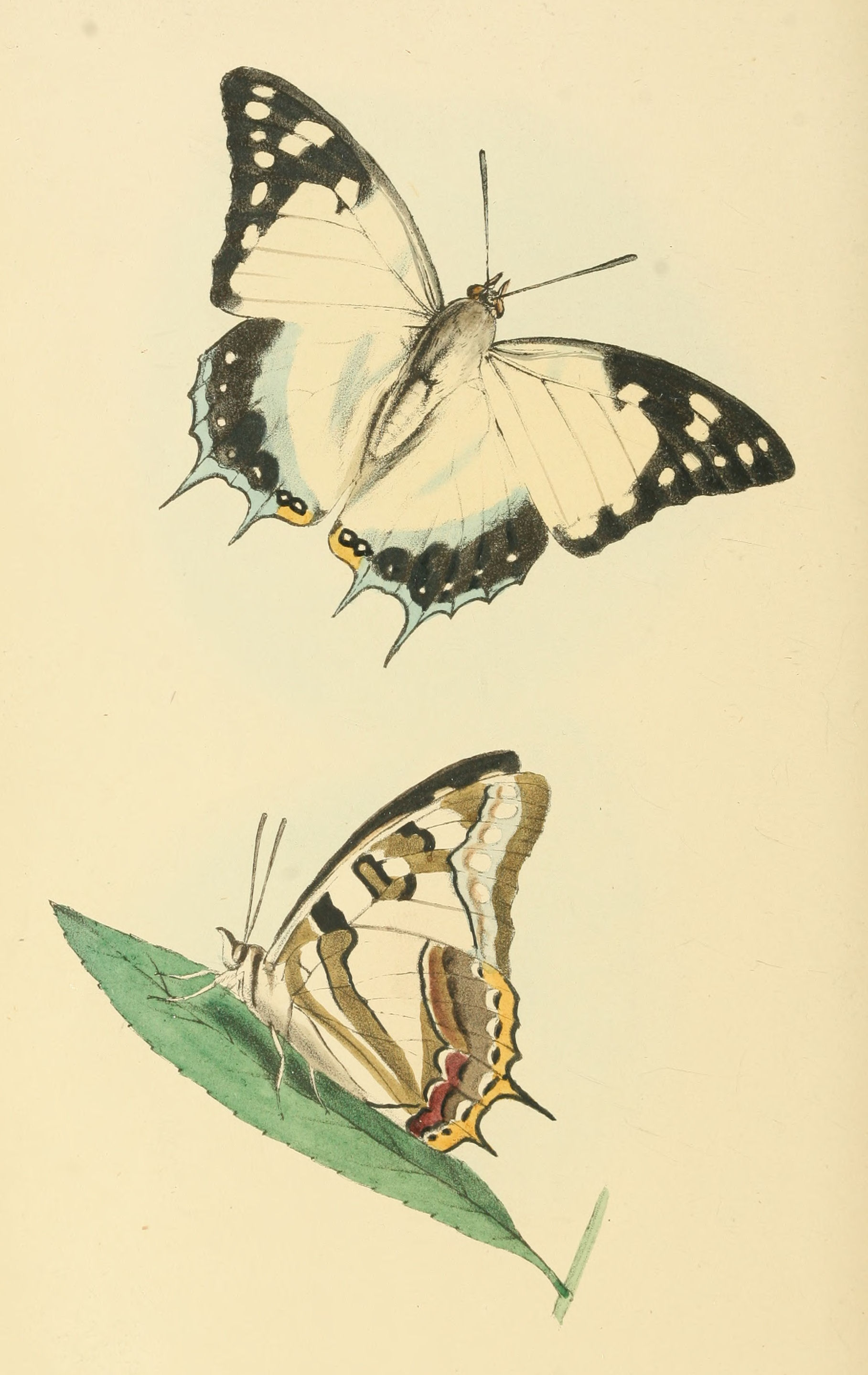 Madam Merian's valuable work on the Insects of Surinam, has furnished us with a figure of the larva; which, unlike that of the European Swallow-tails, is covered with spines: the chrysalis also departs from the usual type of the family, in having the head directed downwards. These facts we have verified by an inspection of the original drawings, of M. Merian, now deposited in the British Museum. These are all important variations in structure, which can only be explained by the natural system.