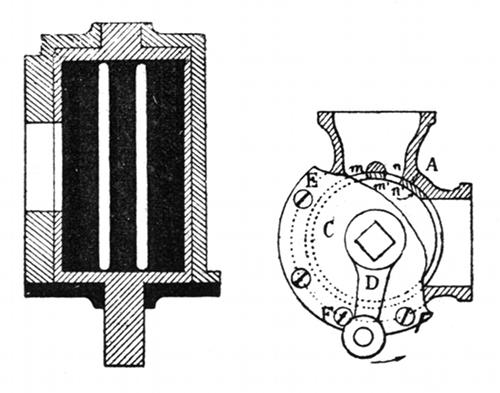 13. La leva L, manovrata da apposita levetta a portata di mano del conduttore, agisce sulla vite senza fine I e può regolare l'efflusso della benzina e moderarne il consumo.