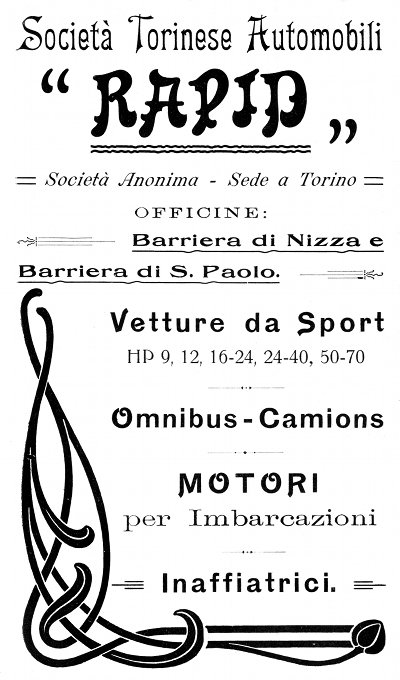 Delle Fabbriche di Torino, la Rapid aveva gli anni passati il differenziale a ruote cilindriche; oggi la sola Junior, se non erriamo, munisce le sue vetture di un tal sistema alquanto differente nel dettaglio.