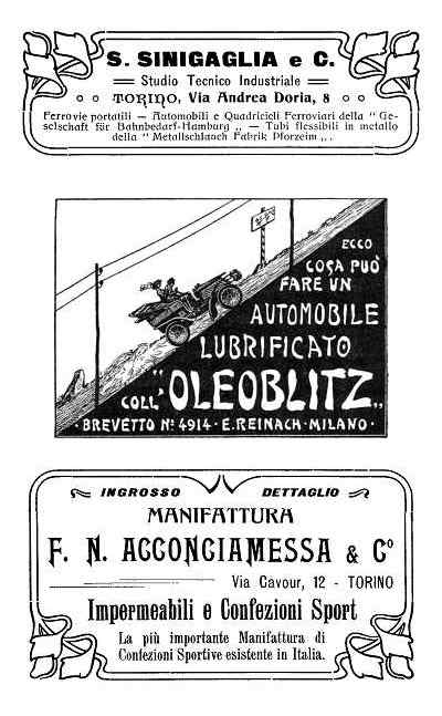 Vetture da città, da viaggio e da corsa. OMNIBUS per Alberghi e Servizi pubblici — CARRI da trasporto fino a 4 tonn. — Canotti automobili.
