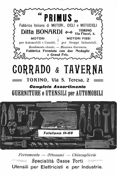 Telefono Intercomunale N. 895 Provveditori delle più importanti Fabbriche d'Automobili d'Italia. TORINO Via Arsenale, 31.