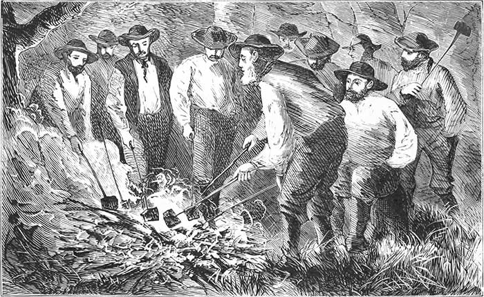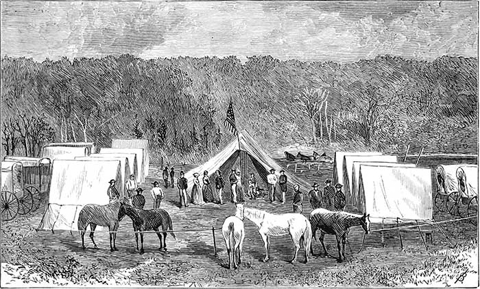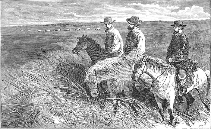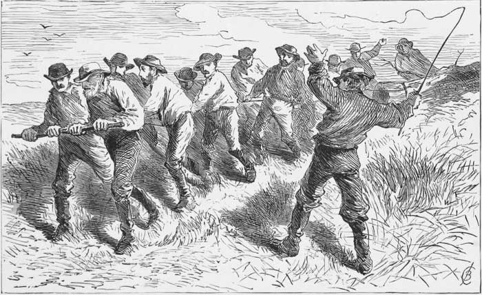 Settlers from New England and the Middle States were having Sabbath-School, temperance, or civic celebrations; Irish societies were marching in procession, bearing green banners emblazoned with[Pg 4] the shamrock, thistle, and harp of Erin; Germans were drinking lager beer, singing songs, and smoking their meerschaums. All work was laid aside, and all hands—farmers with their wives and daughters, young men with their sweethearts, children in crowds—were observing in their various ways the return of the holiday.