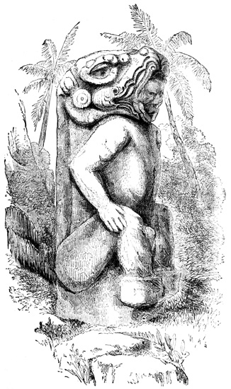 Christopher Columbus in a letter speaks of having seen on this coast, which he calls Cariay, a sculptured tomb in the forest as large as a house; and Mr Helps imagines the Spanish conquerors sailing up the coast and beholding amidst the trees white structures "bearing some likeness to truncated pyramids, and, in the setting sun, dark figures would be seen against the horizon on the tops of these pyramids;"[II-27] but as he is describing no particular voyage, some allowance may be made for the play of his imagination. Mr Boyle is enthusiastic over "the vast remains of a civilization long since passed away," but far superior to that of Spain, including rocks cut down to human and 27 animal shapes, artificial hills encased in masonry, streams turned from their courses, and hieroglyphic sculptures on the cliffs,—all in the Mosquito wilds. As a foundation for this, three men who descended the Rio Mico and Blewfields River from Libertad, Nicaragua, to the sea, claim to have beheld extraordinary ancient works. These took the form of a cliff cut away where the river passed through a narrow cañon, leaving a group of stone animals, among which was a colossal bear, standing erect on the brink of the precipice as if to guard the passage. The natives reported also to Mr Pim the existence of grand temples of the antiguos, with an immense image of the aboriginal god Mico (a monkey) on the banks of this river; but when subjected to cross-questioning, their wonderful stories dwindled to certain rude figures painted on the face of a cliff, which Mr Pim was unable to examine, but which seemed from the native description similar to the cliff-paintings at Nijapa Lake in Nicaragua, to be described on a future page.[II-28]