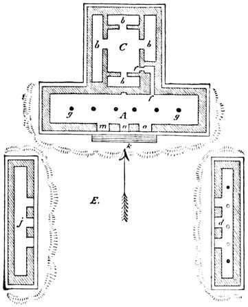 [XII-43] Ingersoll gives these dimensions as 33 and 22 feet respectively, and speaks of three equi-distant doorways, apparently alluding to the same structure.