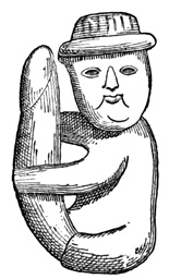 One point bearing on the antiquity of the Chiriquí relics is the wearing away by the weather of the incised sculptures, which appear to Mr Seemann to belong to a more ancient, less advanced civilization than those in low relief.[II-14] Another is the disappearance as a rule of human remains, which, however, as Dr Torrey remarks,[II-15] cannot in this climate and soil be regarded as an indication of great age; and, moreover, against the theory of a remote origin of these relics, and in favor of the supposition that all may be the work of the not distant ancestors of the people found by the Spaniards in possession of the country, we have the fact that gold figures similar to those found in the huacas were made, worn, and traded by 21 the natives of the Isthmus at the time of its discovery and conquest;[II-16] that the animals so universally imitated in all objects whether of gold, stone, or clay, are all native to the country, with no trace of any effort to copy anything foreign; and that similar clay is still employed in the manufacture of rude pottery.[II-17]