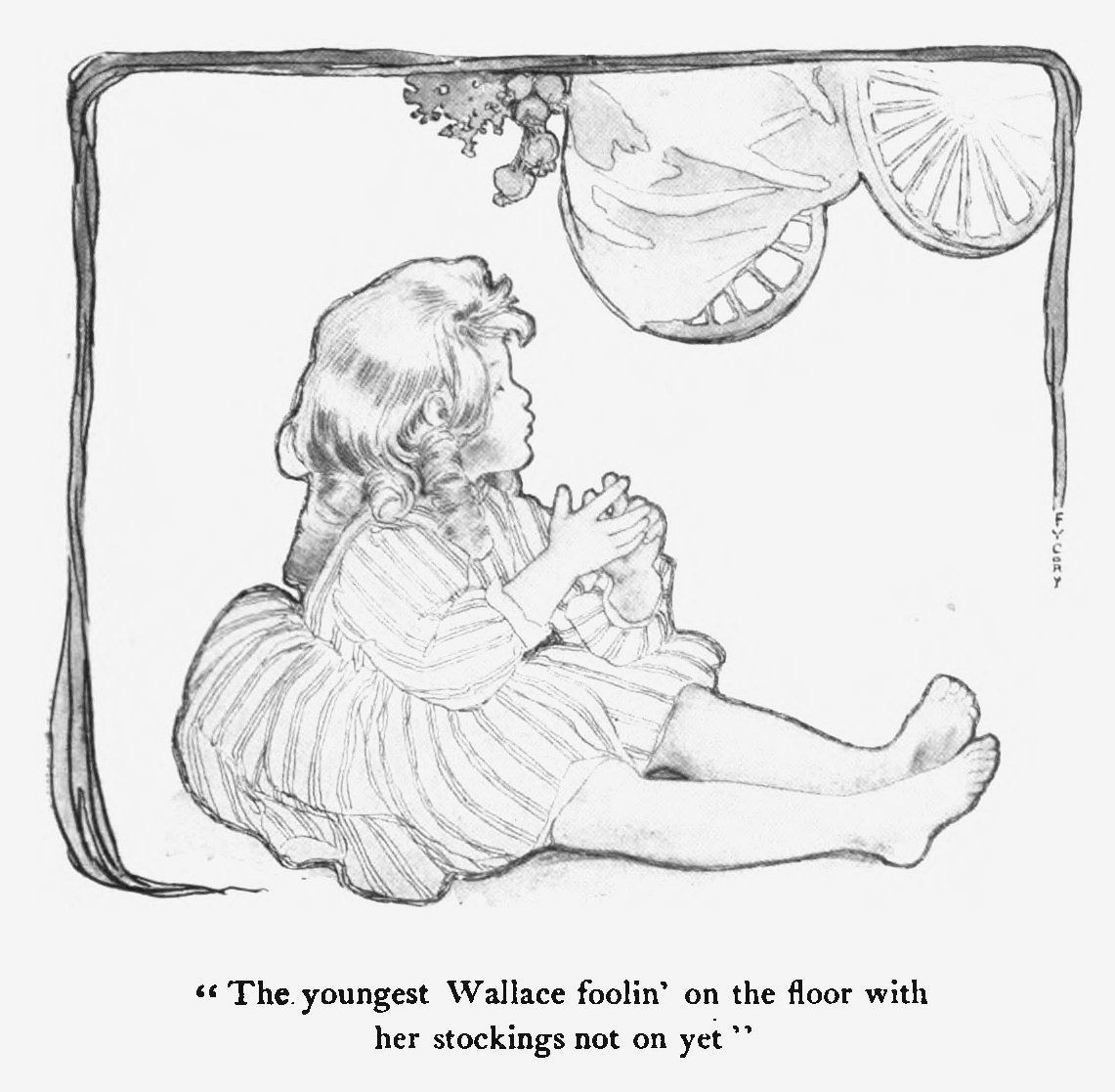 We lifted Deedee out of her crib, and set her down on the floor, and she pattered down the hall. We could hear her tellin' him to give her “laim,” and the puzzled way he answered her back.