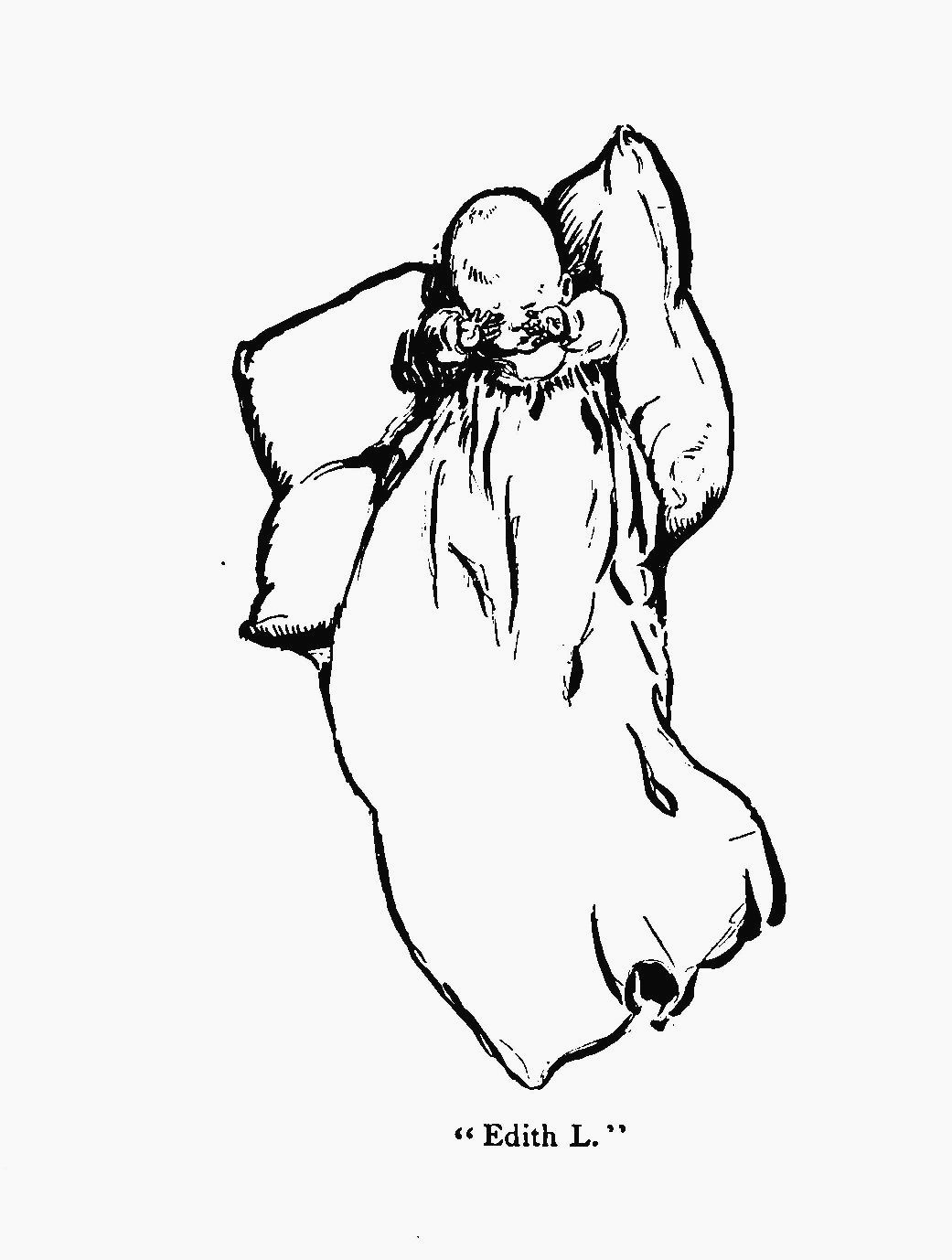 I looked for Marthy first, and I see she was a-sleepin' beautiful, and then Mrs. Murphy pulled down the covers and showed me Edith L.