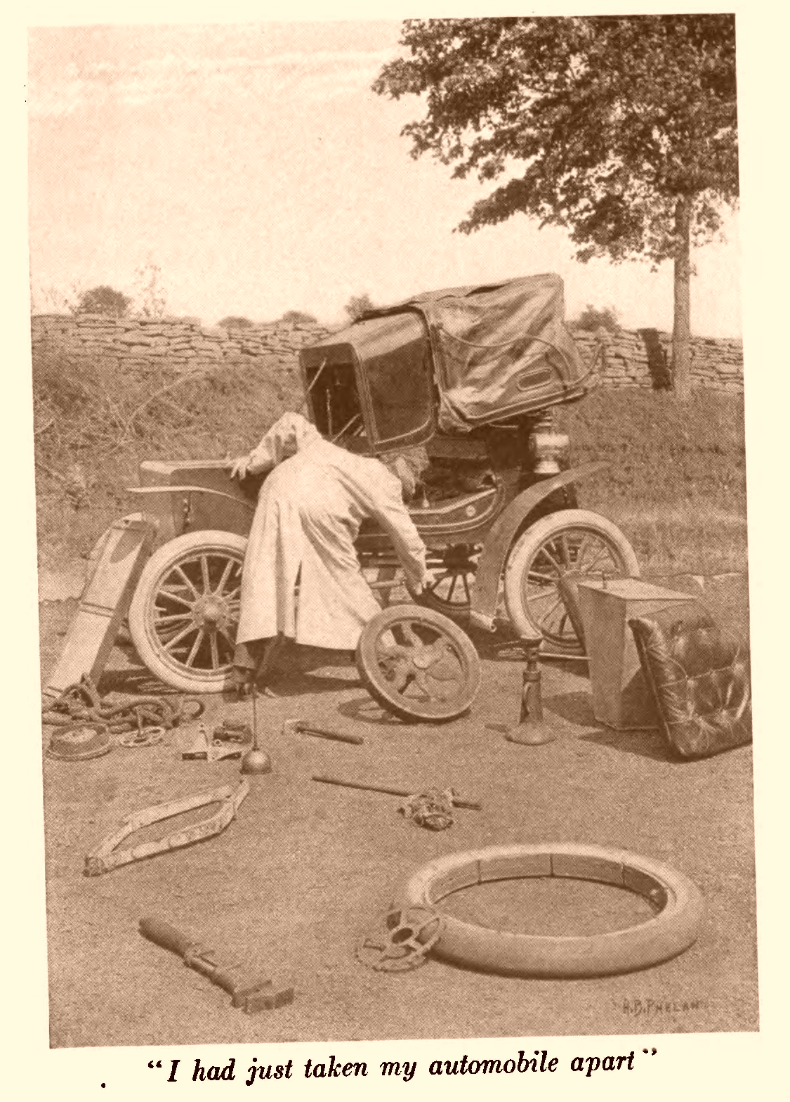 I HAVE said that I left Millington happily working over his automobile when I went to the Country Club that afternoon. When I returned he was still working away, and so well had I wrecked his car that all his repairing seemed to have made not the slightest impression on it.