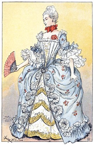 La Régence.—Folies et frivolités.—Cythère à Paris.—Les modes Watteau.—Les robes volantes.—Naissance des paniers.—Criardes, Considérations et Maîtres des requêtes.—Mme de Pompadour.—L'éventail.—Promenade de Longchamps.—Carrosses et chaises à porteurs.—Modes d'hiver. |