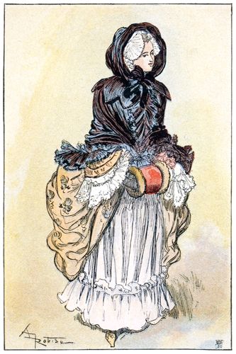 Ah! si la mode plus puissante que les rois et les ministres, que les arrêts, les lois et les édits, si la mode dont les ordonnances sont sans appel, avait pu décréter la conservation des anciens costumes féminins de nos provinces, des 245 modes locales souvent si gracieuses, des élégances campagnardes, auxquelles la ville a si souvent fait des emprunts, des façons de robes, des mantes, et aussi des coiffures si variées, coiffes bressannes, casques de dentelles du pays de Caux, grandes coiffes bretonnes, bonnets d'arlésiennes, etc... Quel sauvetage!