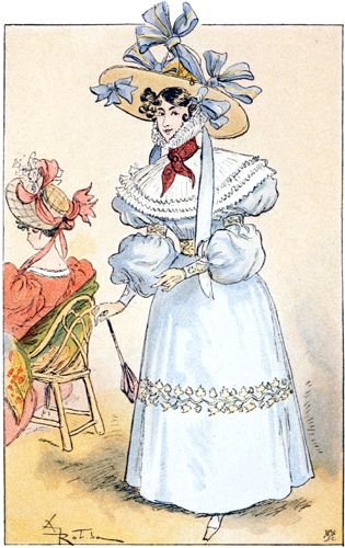 Bien que le recul ne soit pas encore suffisant pour le juger, pour apprécier les modes de ce temps dans leur ensemble, sans se laisser influencer par la pointe de ridicule qui s'attache au démodé, il semble cependant qu'au siècle prochain les femmes et les artistes le jugeront à peu près ainsi. Nous ne voyons pas les peintres élégants d'alors ressuscitant 239 dans leurs tableaux les modes de 1860, pour la joie des mondaines et des américains vingtième siècle.