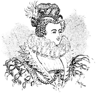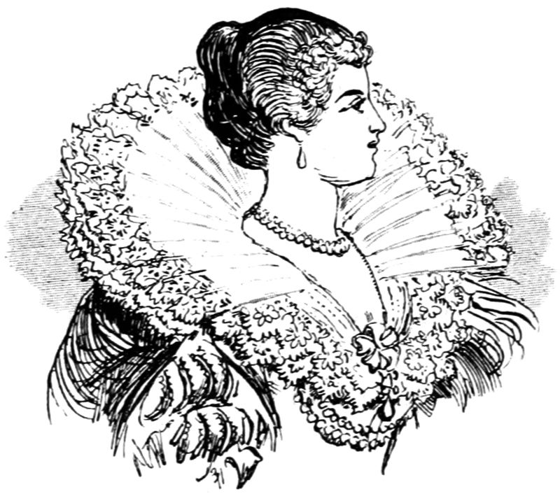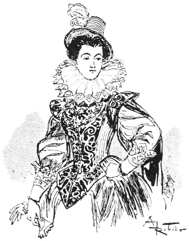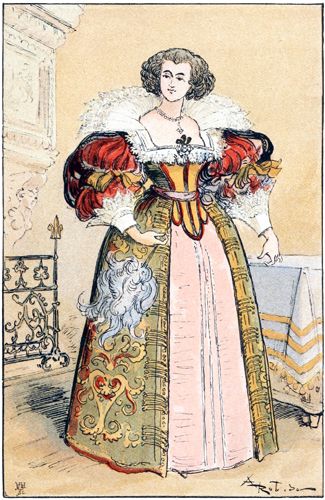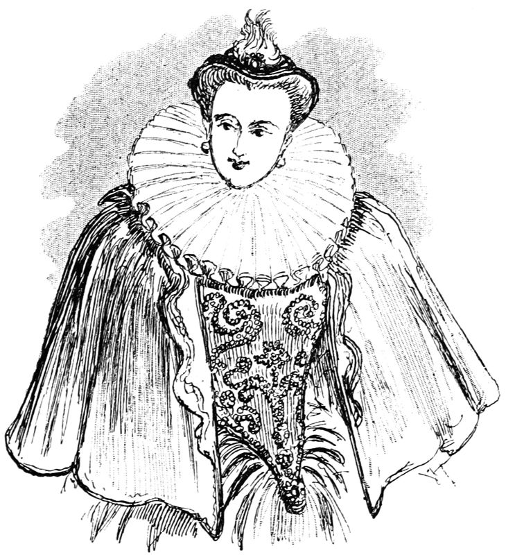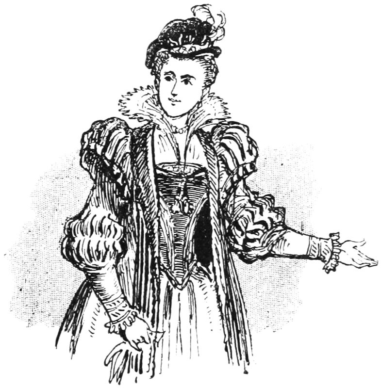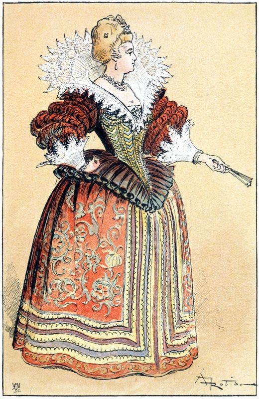 La cour du Roi-Femme.—Les grandes fraises plissées, godronnées ou en cornets.—Les femmes-cloches.—Les grandes manches.—Horribles méfaits du corset.—La reine Margot et ses pages blonds. |