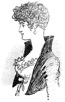 On voit aussi de jolis vêtements très amples, à larges manches, et des pardessus dits Saute-en-barque. Les chapeaux bien différents du cérémonieux chapeau fermé et très crânement portés un peu sur le côté, sont des espèces de coiffures de Toreros, ornés de gros pompons ou de plumes. La coiffure de l'époque est basse, avec un crêpé sur le front, les cheveux tombant dans le dos massés dans un filet.