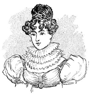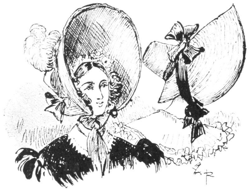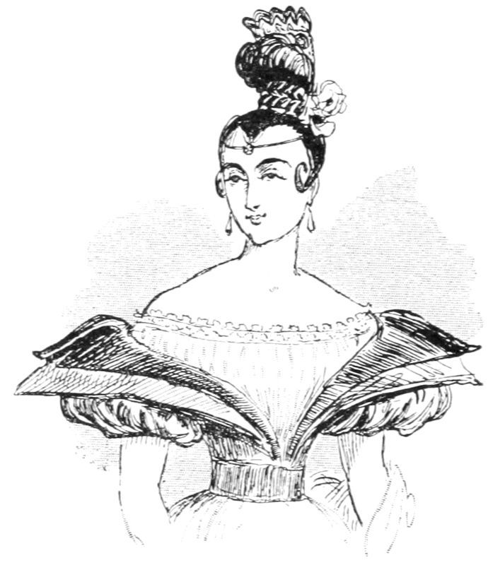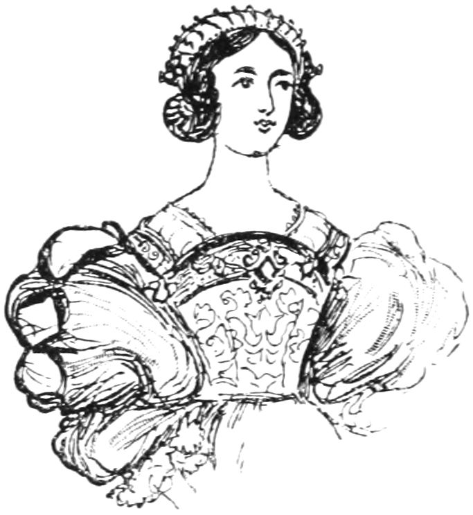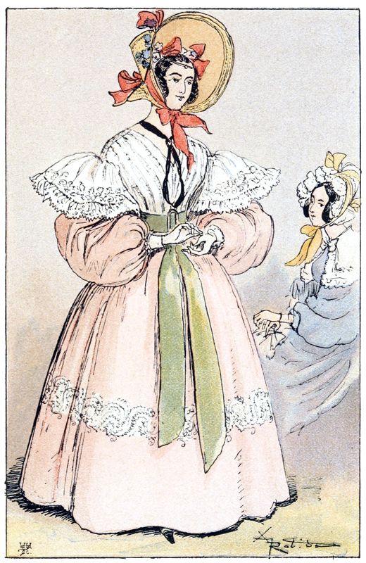 Manches bouffantes, manches à gigot.—Les collerettes.—Modes à la girafe.—Les coiffures et les grands chapeaux.—1830.—Épanouissement des modes romantiques.—Les derniers bonnets.—1840.—Chastes bandeaux.—Modes Juste-milieu. |