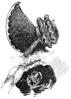 Le chapitre des chapeaux n'est pas bien brillant. Jusque vers 1863, ce sont toujours les grandes capotes de cabriolets, avec bavolets, avec fleurs dans l'intérieur de la passe et au-dessus; cette coiffure, c'est en somme le grand chapeau de la Restauration, abîmé, ridiculement arrangé, finissant tristement ses derniers jours.