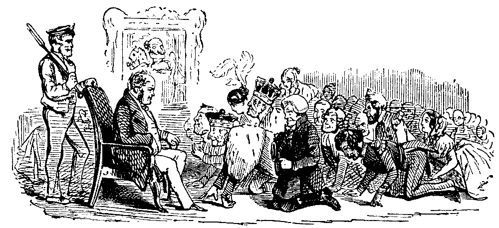Biographies of the Punch staff do not fall within the scope of this chronicle, but some knowledge of the record and the temperament of the men who gave the paper its peculiar quality for many years is essential to a proper understanding of its influence[Pg 6] on public opinion. They were humorous men, but they could be terribly in earnest, and they had abundant excuse for their seriousness. They could not forgive the Duke of Wellington when on August 24, 1841, he declared that England was "the only country in which the poor man, if only sober and industrious, was quite certain of acquiring a competency." They regarded it as "a heartless insult thrown in the idle teeth of famishing thousands, the ghosts of the victims of the Corn Laws.... If rags and starvation put up their prayer to the present Ministry, what must be the answer delivered by the Duke of Wellington? 'Ye are drunken and lazy!'" A few days later Mr. Fielden, M.P., moved "that the distress of the working people at the present time is so great throughout the country, but particularly in the manufacturing districts, that it is the duty of this House to make instant inquiry into the cause and extent of such distress, and devise means to remedy it; and at all events to vote no supply of money until such inquiry be made." The motion was negatived by 149 to 41, and a Tory morning paper complacently observed that "there has been for the last few days a smile on the face of every well-dressed gentleman, and of every well-to-do artisan, who wend their way along the streets of this vast metropolis. It is caused by the Opposition exhibition of Friday night in the House of Commons." The comment on this "spiteful imbecility" is not to be wondered at: "Toryism believes only in the well-dressed and the well-to-do. Purple and fine linen are the instrumental parts of her religion. Her faith is in glossy raiment and a full belly." The Home Secretary stated in reply to a question, about a year later, that the keepers of St. James's Park were particularly ordered "not to admit persons who wore fustian jackets," an order which prompted Punch to remark that in Merry England "labour was ignominy, and your only man the man with white hands and filbert nails." A writer in the Examiner so recently as 1861 could remember the time when the sentries in St. James's Park used, at the point of the bayonet, according to their orders, to dismount women from their pattens, and make them trudge on with them in their hands. It is [Pg 7]an old story; as old as the days of Ahasuerus, when "no one might enter the King's gate clothed with sackcloth." Punch never wearied of bringing home to his readers these abrupt contrasts of wealth and poverty. The people were crying for bread and Parliament had been occupied in carrying the Ventilation of the House Bill and the Royal Kitchen Garden Bill. The amount voted for the Royal Stables at Windsor was considerably more than three times what was obtained from Parliament for the education of the poor. The Times of December 2, 1841, quoted from the Sporting Magazine an account of the accommodation provided for the Prince Consort's beagles and Her Majesty's dogs—sleeping beds, compartments paved with asphalt, dry and clean, with roomy and healthy green yards; and boiling and distemper houses detached from the other portions of the building—and bracketed with it the sworn evidence of the late matron and medical attendant at the Sevenoaks Union. The lying-in ward was small and always looked dirty. "There had been six women there at one time: two were confined in one bed. It was impossible entirely to shut out the infection. I have known fifteen children sleep in two beds." Six young girls, inmates of the Lambeth workhouse, were charged about the same time with breaking several panes of glass. In their defence they complained that they had been treated worse in the workhouse than they would be in prison, and said that it was to cause their committal to the latter place they broke the windows. Strange reading this in a comic journal, yet paralleled by similar extracts week after week and month after month. The birth of the Prince of Wales was chronicled in the same issue of the daily papers which contained the "luscious history" of the Lord Mayor's dinner:—