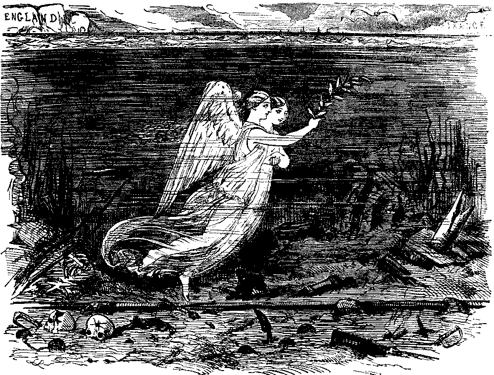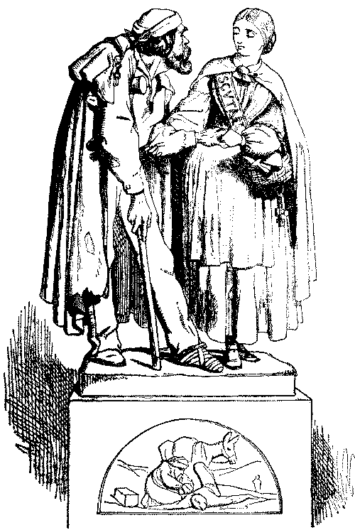 Will you consider me ridiculous or blind when I assure you, on my honour as a puppet and a public performer, that these young gentlemen have written for me this year four of the sweetest and deepest and most thoughtful books I have read since I laid down Mr. Millais's historical romance of The Huguenot, last year? I am sensible of the omniscience of the daily, and some of the weekly papers, and I am aware that this is an opinion which should not be breathed within ear-shot of places where they take in The Times, and the Morning Post, and the Examiner. But I am a sort of[Pg 302] chartered libertine, and nobody will believe anything I say is serious, so I can enjoy the luxury of saying what I feel, having no character to keep up. Then I tell you frankly—not forgetting Edwin Landseer's two grand cantos of his Highland Poem, Night and Morning by the Lochside, or Stanfield's noble paean-picture of the Battered Hull that carries the body of Nelson, like a Viking with his ship for bier—not forgetting these and other picture-books well worth reading—I tell you that Hunt's Claudio and Isabella is to me the book of the collection, though it records in colours what Shakespeare has written in words; and that little, if at all after it, comes Millais's Order of Release, and then the Strayed Sheep and Proscribed Royalist of the same authors. I do not mean to put either after the other, so I bracket them."