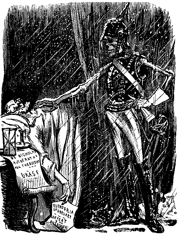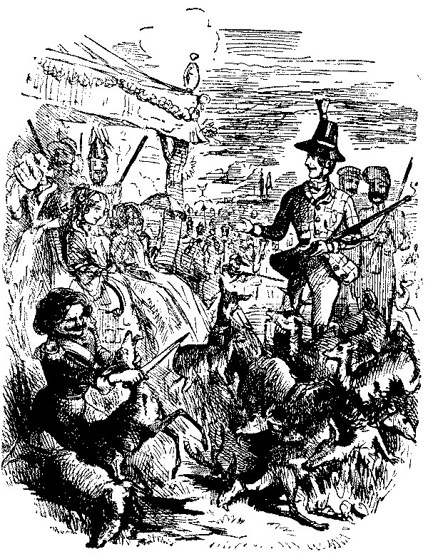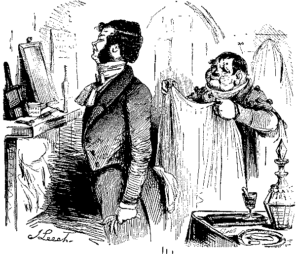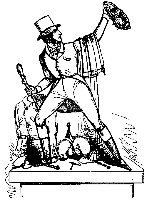Towards the end of the period reviewed in this volume, Punch enumerates his special bêtes noires as "Humbug, Cant, Sleek Hypocrisy and Brazen Wrong." But as has already been abundantly proved, the list would have to be considerably extended to include all the personages, notable and notorious, who came under his lash. In earlier years he is much more specific. Thus in 1850 his amiable catalogue of the gentlemen and public bodies who have kindly consented to furnish him with game in the ensuing year contains Colonel Sibthorp, the bearded reactionary who sat for Lincoln, Barry, the architect of the new Houses of Parliament, all quack-medicine vendors, tyrants and woman-floggers (the Tsar Nicholas and Haynau are specially aimed at), Madame Tussaud, Lord Brougham, R.A.'s, the Dean and Chapter of St. Paul's, Smithfield and all City nuisances, and all sinecurists and pensionists. In 1852 Panizzi (for his long deferred catalogue of the British Museum of which he was Chief Librarian), Cardinal Wiseman, and Lord Maidstone are added, together with Railway Directors, Homœopathists and Protectionists.