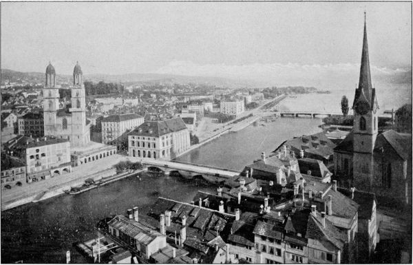 The river Rhine is close by us here, flowing through Lake Constance. Every day in summer sees crowds of the St. Gallese rushing down to the lake by train, to bathe in its waters. The ride down there, with its glimpses of mountain valleys, blooming orchards, and shining waterfalls, is one of the most picturesque in Europe. Down by the water side are villages and walls old as the time of the Romans.