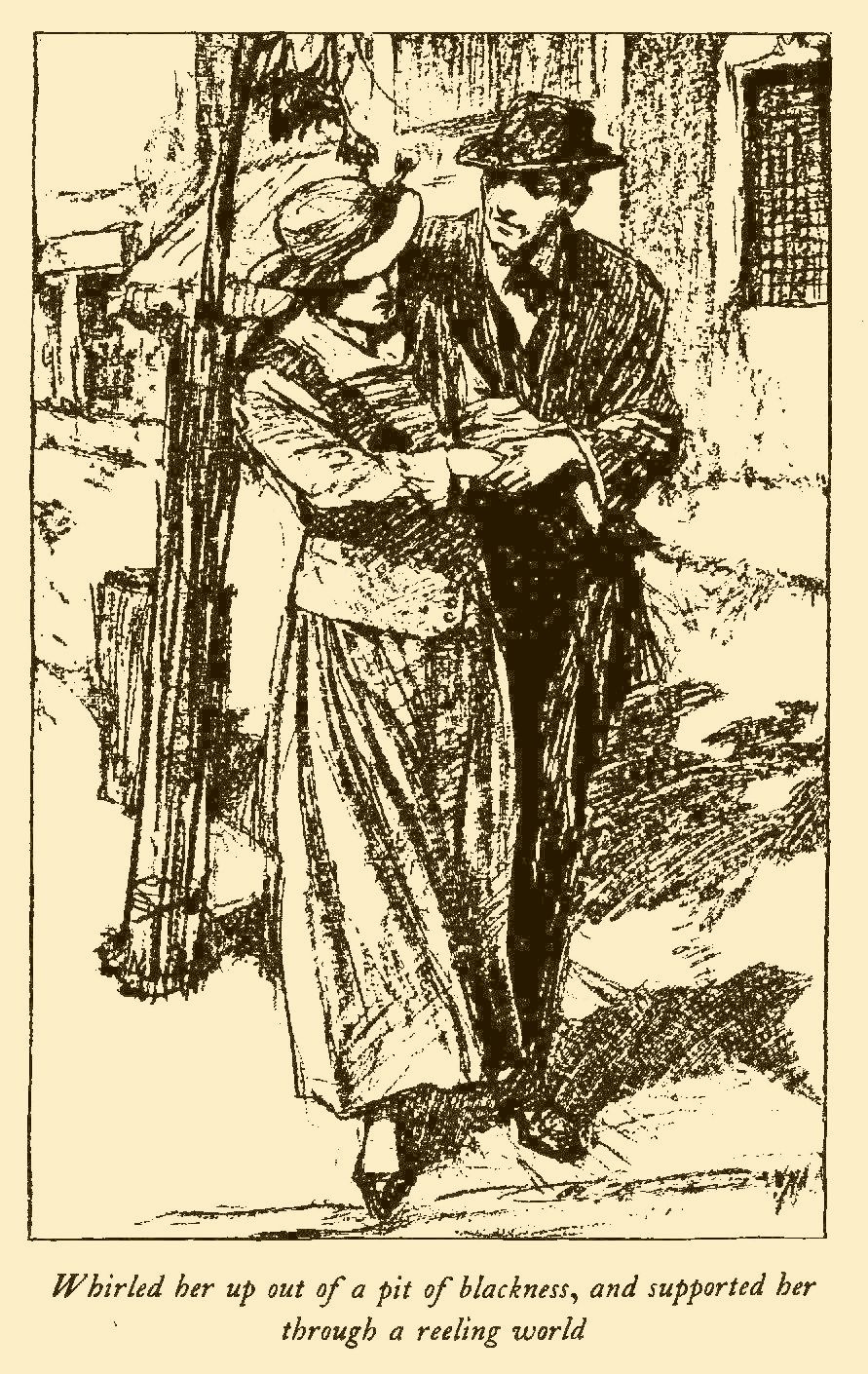 There was a stifled cry from the darkness, and a rustle and the sound of swift, light feet. Two dim figures met and merged in one. The fairy voice, with a desperate effort to be still a voice and not quite a sob of mingled pity and joy, murmured brokenly: “I—I d-d-don't love you. But I c-c-can't live away from you.” And I passed out, on tiptoe, unnoted. The tiptoe feature was, I dare say, superfluous. I suppose I might have marched out to the blare of a brass band and with a salvo of artillery, and still have been as a formless, soundless wraith to the Little Red Doctor who stood holding all heaven and earth in his arms.