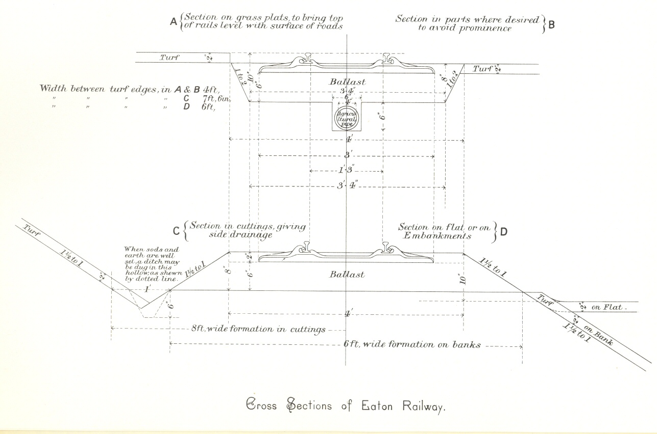 I desire to take this opportunity of expressing my thanks to the Duke of Westminster for the free hand accorded me in regard to the arrangement of all details of the Eaton Railway; a liberty which has resulted in a symmetrical and entirely successful carrying out of the work.