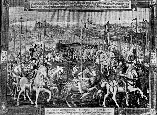 Although their own extravagance is past all question, on September 30th, 1499, Ferdinand and his consort issued a proclamation at Granada, in which it was commanded that “no persons shall wear clothing of brocade, or silk, or silk chamelote, or zarzahan, or taffeta, or carry linings of the same upon the trappings of their horses, or upon hoods, or the straps and scabbards of their swords, or bits, or saddles, or alcorques[4] … nor shall they wear embroidered silk-stuffs decorated with gold plates, whether such gold be drawn or hammered, spun to a thread, or interwoven with the fabric.”