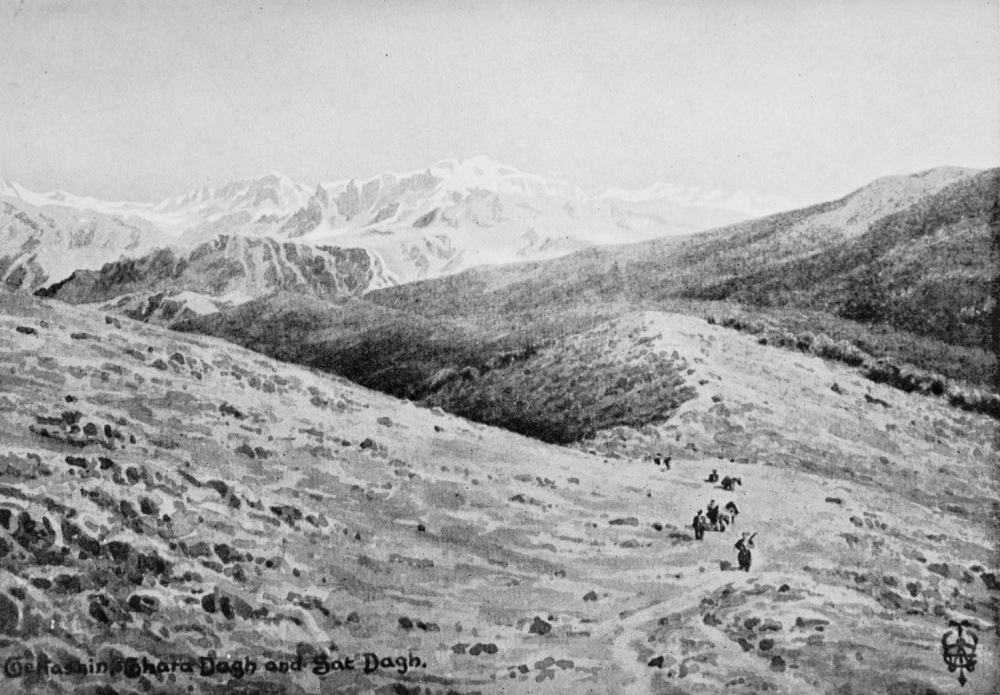 [161] The Yaila of Shina lies amid the mountains which are shown in the illustration facing p. 176. It would be near the extreme left of the picture, facing the precipices of Ghara Dagh.