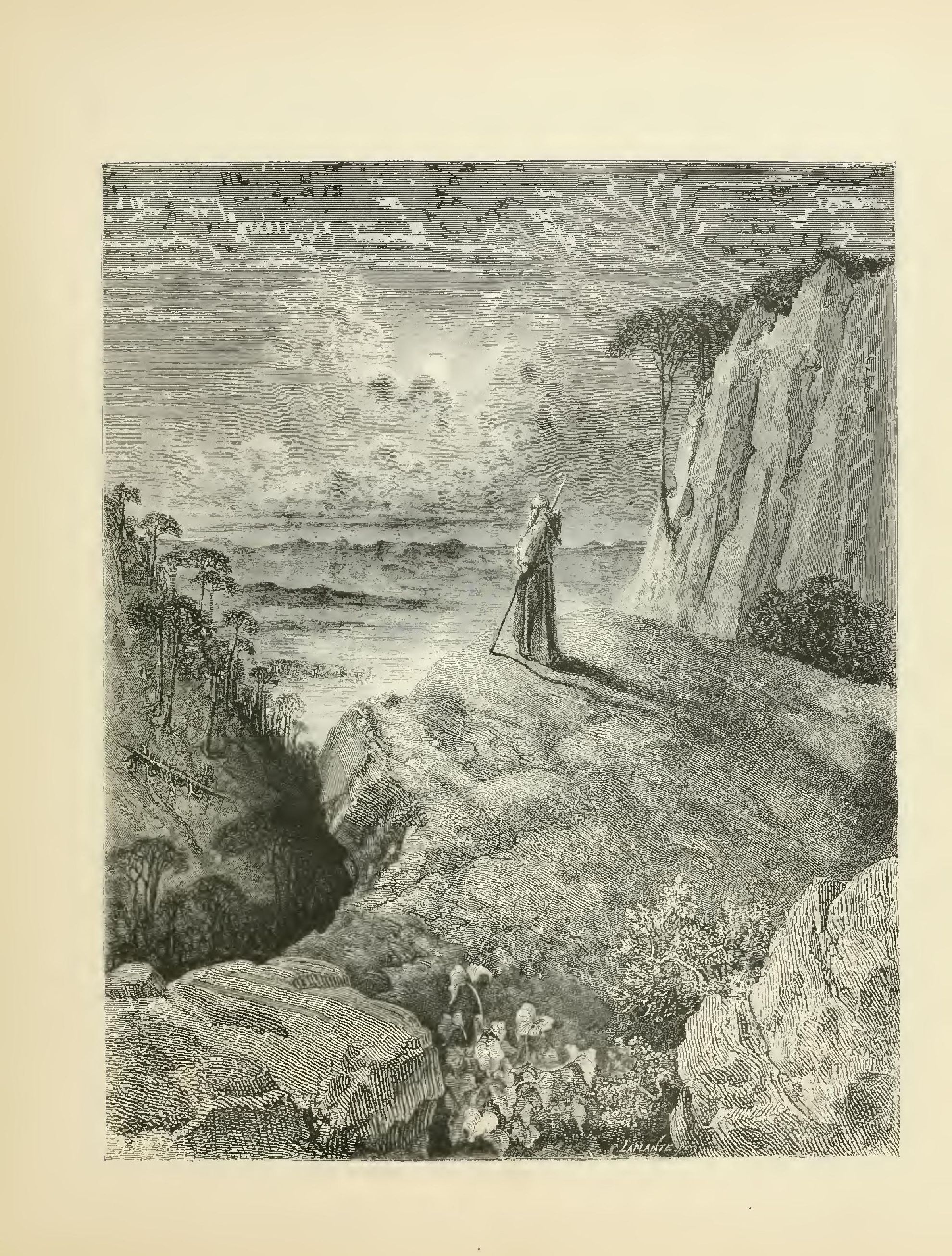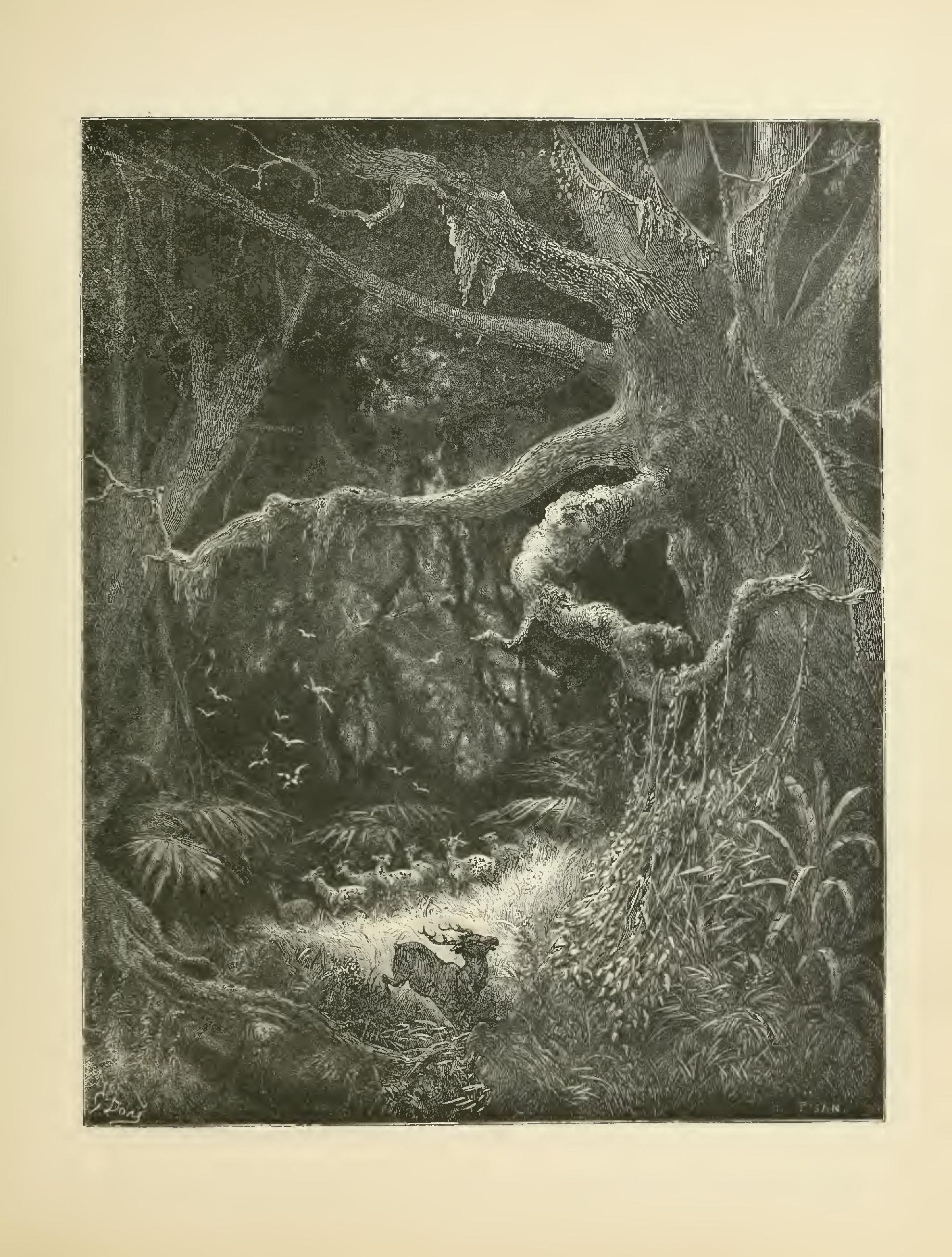 The illustrations of M. Doré have given an additional value to this tale, so simple, so unsophisticated, yet blooming with all the wild luxuriance of nature. The artist has added his gifts to those of the poet; and those acquainted only with his ready and original powers as the delineator of farce and drollery, or of the exceptionally tragic and horrible, will find new cause for admiration in these quiet renderings of the primeval beauties of the American wild—its plains and forests, its still lagoons and roaring cataracts, its mountain slopes and deep defiles—all its aspects of rudest workmanship—and will welcome these efforts of his genius in the lovely realm of descriptive art, wedded as they are to the exquisite simplicity of this Indian romance. As in his other works, here may be noted the same surpassing fertility of resource, the same alertness of intellect and readiness and swiftness of touch; but there may also be found new proofs of his complete sympathy with all that is picturesque in forest beauty and his high intuitive perception of every possible phase of nature in her wildest caprice and most tender bloom.