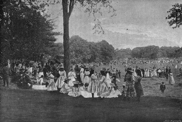 That was but the background, the framework of the picture. For the great scene was on the water. Never until at Spithead this midsummer, when six square miles of the Solent crowded with the warships of the world burst at a signal into a glittering wilderness of lights, had I ever seen anything to compare to the Hudson at midnight. In Paris on the night of the fête of the Republic in Exhibition year, when the Seine was crowded with steamers, all illuminated and decorated from stem to stern, there was something like this. But the Seine was but a skein of silk stretched across the city; the water was hidden by the craft. Here the whole expanse of waterway exceeded even that of the Neva at St. Petersburg; and, although full of life and colour and sound, was nowhere crowded.