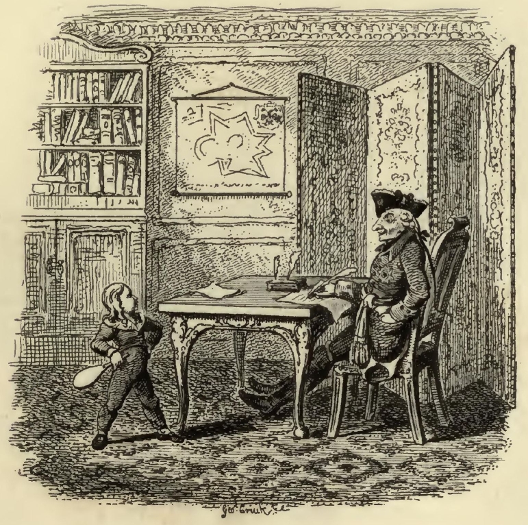 Frederick the Great, King of Prussia, was so remarkably fond of children, that he suffered the sons of the Prince Royal to enter his apartment whenever they thought proper. One day, while he was writing in his closet, the eldest of these princes was playing at shuttlecock near him. The shuttlecock happened to fall upon the table at which the King sat, who threw it at the young prince and continued to write. The shuttlecock falling on the table a second time, the King threw it back, looking sternly at the child, who promised that no accident of the kind should happen again; the shuttlecock however fell a third time and even upon the paper on which the king was writing. Frederick then took the shuttlecock and put it in his pocket: the little prince humbly asked pardon and begged the King to return him his shuttlecock. His Majesty refused: the prince redoubled his entreaties, but no attention was paid to them; the young prince at length being tired of begging, advanced boldly towards the King, put his two hands on his side, and tossing back his little head with great haughtiness, said in a threatening tone, "Will your Majesty give me my shuttlecock, Yes or No?"