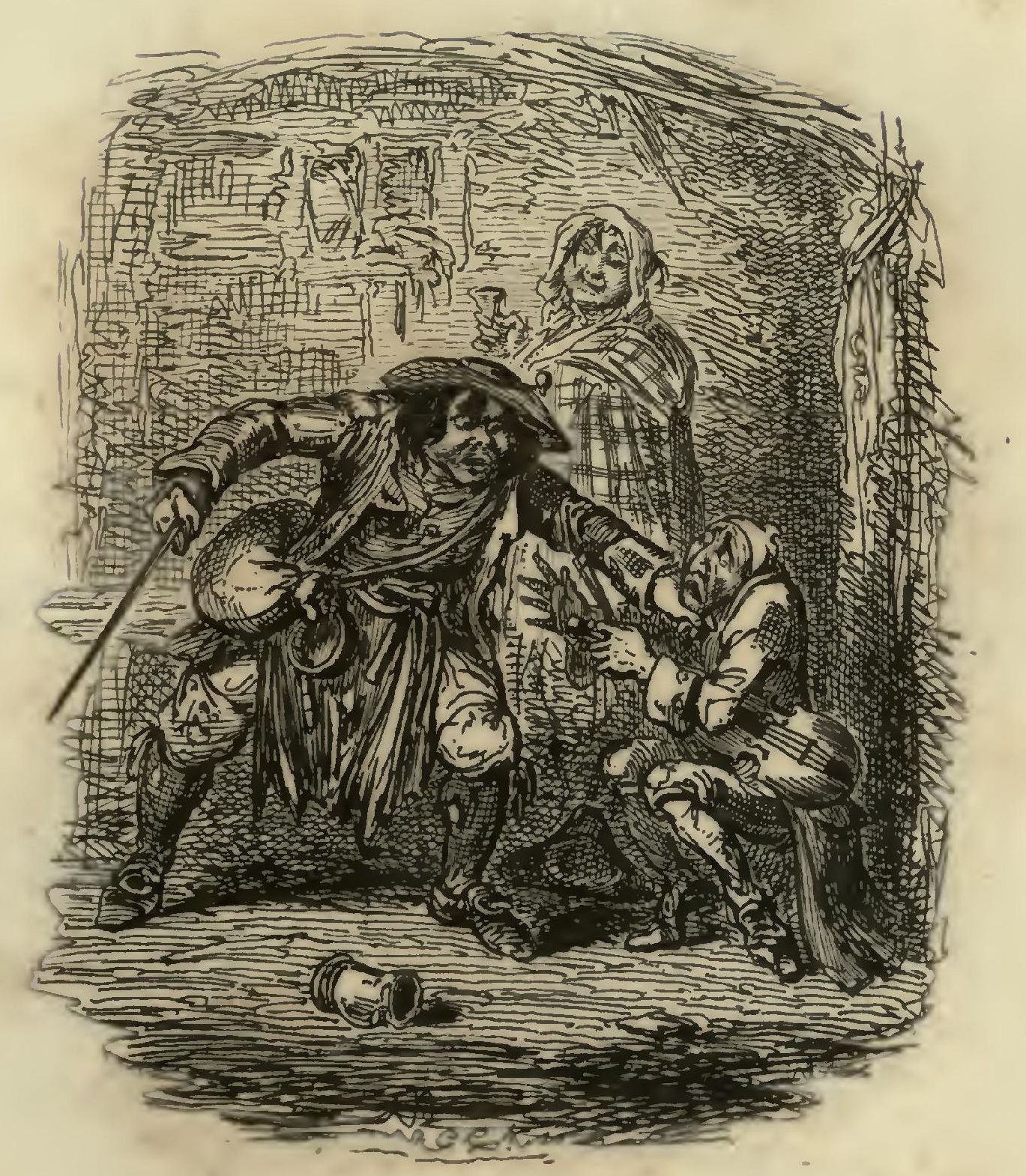 "The Devil I have," returned the miller, in a tone which came up like a groan, as he gazed upon his nether man. Quickly comprehending the secret of the exchange, he pocketed the notes, drank up the brandy for his own consolation, and went home, moralizing his pensive path, and gave the hypocritical culprit the soundest beating she ever had in her life. She, poor soul! who had been charitably employed in the meanwhile, in letting the bird out of his cage, was not prepared for this reception; nor did she understand it until the next morning, when the breeches were cried round the town by her malignant husband, who also with no pleasant expression of countenance, made a point of turning over his newly-acquired riches in her presence.