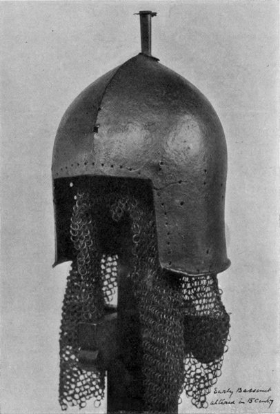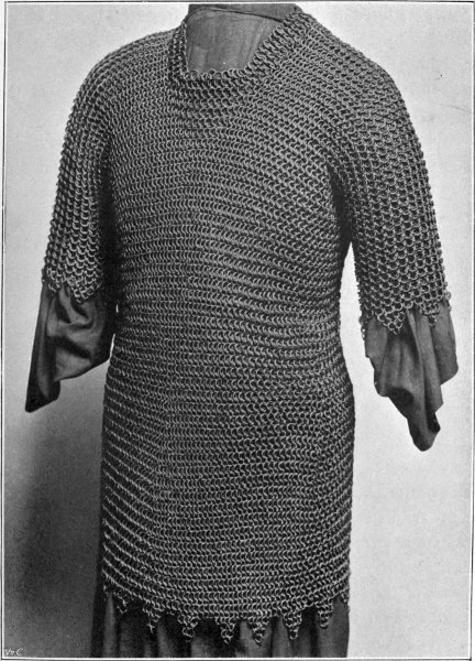 The wearing of armour, particularly mail, on land, necessitated riding, and the northern rovers, finding the weight intolerable on their inland forays, took to horse whenever possible, harrying by this means an extent of country otherwise almost inaccessible. They even learnt in time to transport their horses over the sea, and in the ninth and tenth centuries landed in England from France as a mounted force, as their descendants after them did at Hastings. The English, on the other hand, rarely wore mail, though the spoils of the Danes might have furnished a fair supply, and they only used cavalry as a small force for scouting. An English king of the eighth century is, however, represented in mail by Strutt, and Harold and his immediate companions may have worn mail at Hastings, as represented in the Bayeux tapestry, and as he certainly did when assisting William in his war against Conan of Brittany. Handsome presents of Norman arms and armour were then made to him by Duke William. A little later we have the curious testimony of Anna Comnena, 1083-1146, that this mail, made entirely of steel rings riveted together, was wholly unknown in Byzantium, and only worn by the inhabitants of Northern Europe.