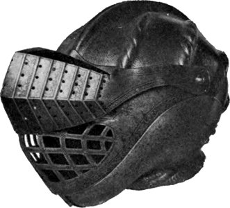 The charger ridden by Lord Scales in his tourney with the Bastard of Burgundy had a “schaffrõ with a large sharpe pyke of stele,” which, penetrating the nostrils of the Bastard’s steed, caused it to rear and throw him. The oldest chanfron handed down is that in Warwick Castle, which was there when visited by Sir William Dugdale. The lower part of one belonging to the suit, Fig. 29, is seen in Plate VII.