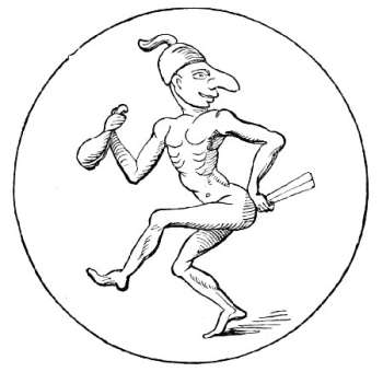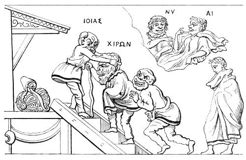 [35] “Uti me consuesse tragœdi syrmate, histrionis crotalone ad trieterica orgia, aut mimi centunculo.”—Apuleius, Apolog.