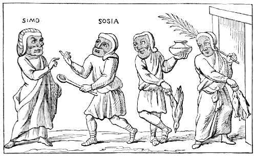 | ORIGIN OF THE STAGE IN ROME—USES OF THE MASK AMONG THE ROMANS—SCENES FROM ROMAN COMEDY—THE SANNIO AND MIMUS—THE ROMAN DRAMA—THE ROMAN SATIRISTS—CARICATURE—ANIMALS INTRODUCED IN THE CHARACTERS OF MEN—THE PIGMIES, AND THEIR INTRODUCTION INTO CARICATURE; THE FARM-YARD; THE PAINTER’S STUDIO; THE PROCESSION—POLITICAL CARICATURE IN POMPEII; THE GRAFFITI | 23 |