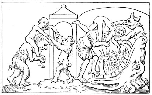 | THE PERIOD OF TRANSITION FROM ANTIQUITY TO THE MIDDLE AGES—THE ROMAN MIMI CONTINUED TO EXIST—THE TEUTONIC AFTER-DINNER ENTERTAINMENTS—CLERICAL SATIRES: ARCHBISHOP HERIGER AND THE DREAMER; THE SUPPER OF THE SAINTS—TRANSITION FROM ANCIENT TO MEDIÆVAL ART—TASTE FOR MONSTROUS ANIMALS, DRAGONS, ETC.; CHURCH OF SAN FEDELE, AT COMO—SPIRIT OF CARICATURE AND LOVE OF GROTESQUE AMONG THE ANGLO-SAXONS—GROTESQUE FIGURES OF DEMONS—NATURAL TENDENCY OF THE EARLY MEDIÆVAL ARTISTS TO DRAW IN CARICATURE—EXAMPLES FROM EARLY MANUSCRIPTS AND SCULPTURES | 40 |