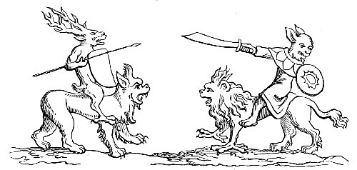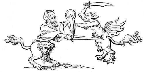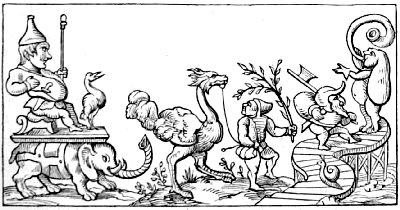 | THE MONKEY IN BURLESQUE AND CARICATURE—TOURNAMENTS AND SINGLE COMBATS—MONSTROUS COMBINATIONS OF ANIMAL FORMS—CARICATURES ON COSTUME—THE HAT—THE HELMET—LADIES’ HEAD-DRESSES—THE GOWN, AND ITS LONG SLEEVES | 95 |
