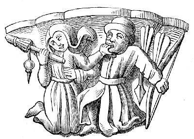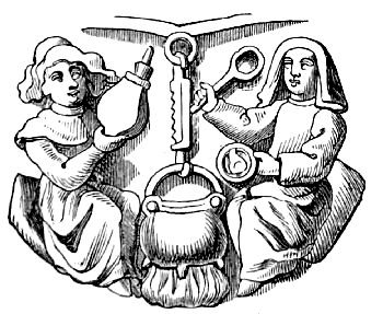 | CARICATURES OF DOMESTIC LIFE—STATE OF DOMESTIC LIFE IN THE MIDDLE AGES—EXAMPLES OF DOMESTIC CARICATURE FROM THE CARVINGS OF THE MISERERES—KITCHEN SCENES—DOMESTIC BRAWLS—THE FIGHT FOR THE BREECHES—THE JUDICIAL DUEL BETWEEN MAN AND WIFE AMONG THE GERMANS—ALLUSIONS TO WITCHCRAFT—SATIRES ON THE TRADES: THE BAKER, THE MILLER, THE WINE-PEDLAR AND TAVERN KEEPER, THE ALE-WIFE, ETC. | 118 |