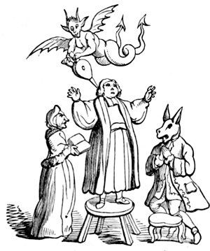 | THE AGE OF THE REFORMATION—THOMAS MURNER; HIS GENERAL SATIRES—FRUITFULNESS OF FOLLY—HANS SACHS—THE TRAP FOR FOOLS—ATTACKS ON LUTHER—THE POPE AS ANTICHRIST—THE POPE-ASS AND THE MONK-CALF—OTHER CARICATURES AGAINST THE POPE—THE GOOD AND BAD SHEPHERDS | 244 |