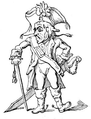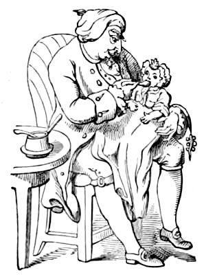 [105] In the library of the British Museum there is a collection of John Kay’s works bound in two volumes quarto, with a title and table of contents in manuscript, but whether it is one of a few copies intended for publication, or whether it is merely the collection of some individual, I am not prepared to say. It contains 343 plates, which are stated to be all Kay’s works down to the year 1813, when this collection was made. “The Craft in Danger” is not among them. I have before me a smaller, but a very choice selection, of Kay’s caricatures, the loan of which I owe to the kindness of Mr. John Camden Hotten, of Piccadilly. I am indebted to Mr. Hotten for many courtesies of this description, and especially for the use of a very valuable collection of caricatures of the latter part of the eighteenth century and earlier part of the present, mounted in four large folio volumes, which has been of much use to me.