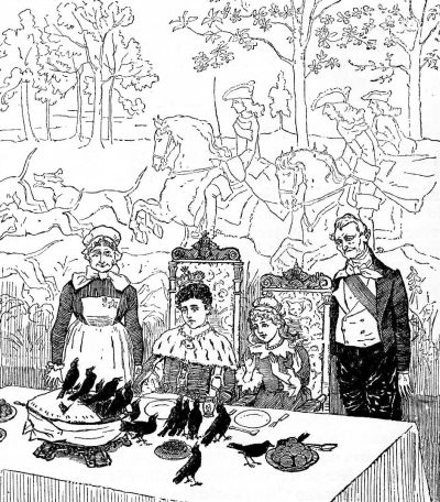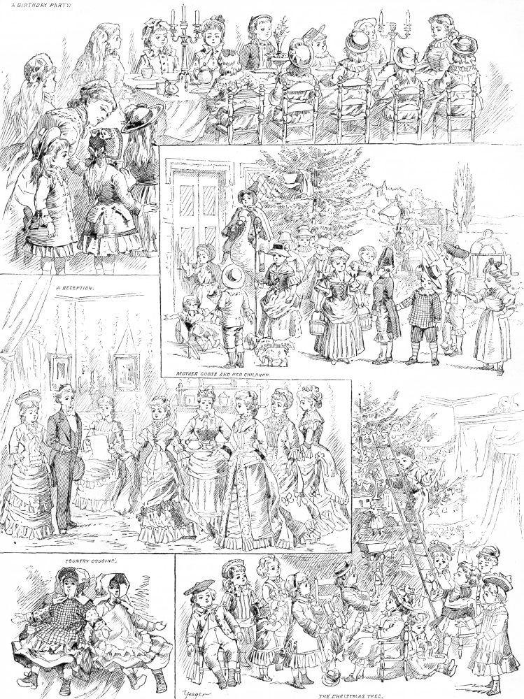 Mother Goose and her children were dressed in the costumes with which innumerable picture-books have made every child familiar.